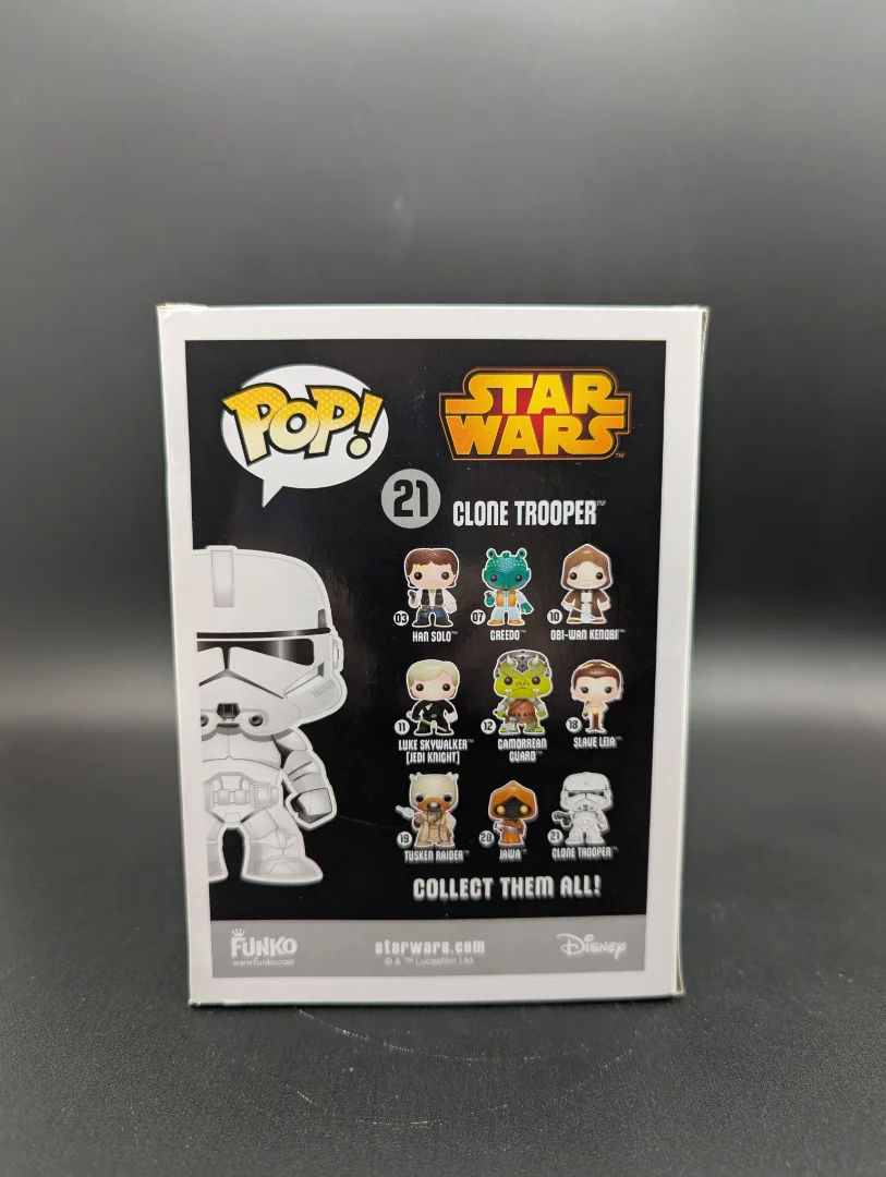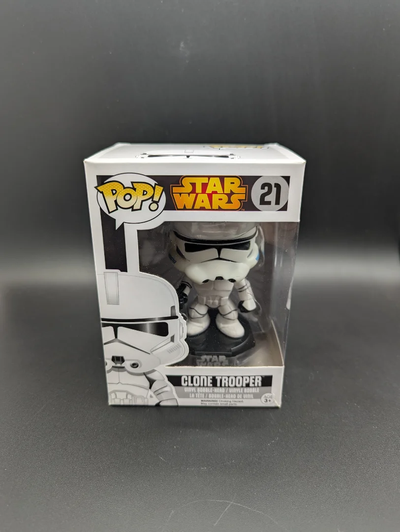 Clone Trooper Funko, ready to take orders in your collection. Drastically discounted due to some packaging damage. Figures remain undamaged.