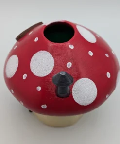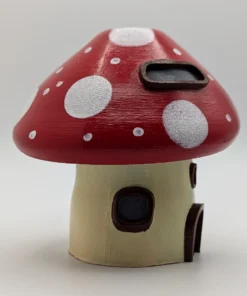 In house designed and 3D printed fantasy mushroom house dice tumbler. Stands 6 inches tall, 5.5 inches wide. Printed in one colour, some sanding is required where the supports were removed. Dice not included.