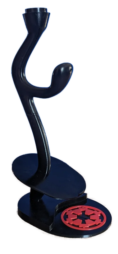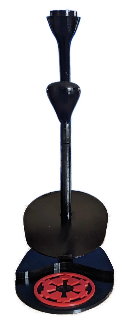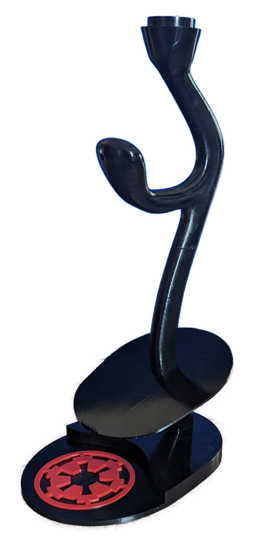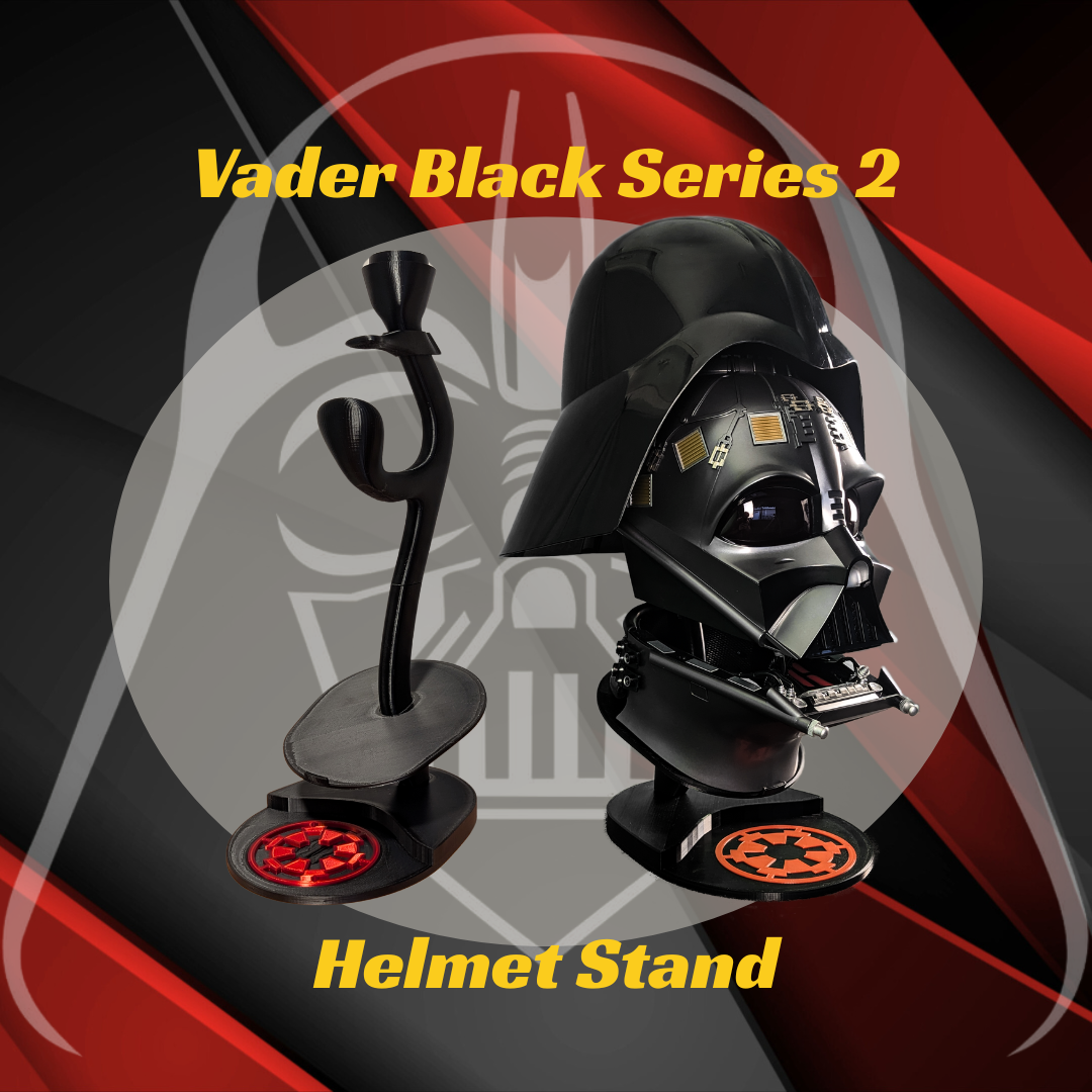 Specifically designed for the Black Series Darth Vader Helmet versions 1 & 2. Five separate pieces, once assembled, this stand impressively displays the three pieces of the helmet in exploded view. Each piece of the helmet stand is now available for individual purchase. 3D printed from original files. Completed stand measures 22 inches tall. HELMET NOT INCLUDED. Made to order.